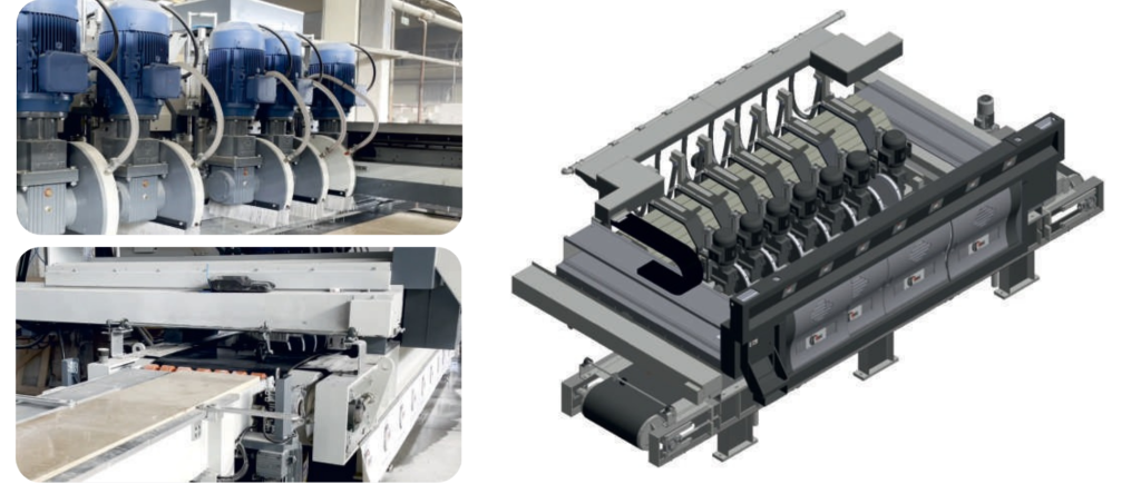 The SEH600 Strip Sizing Line is designed to size the stones—previously cut from blocks into strips—down to exact